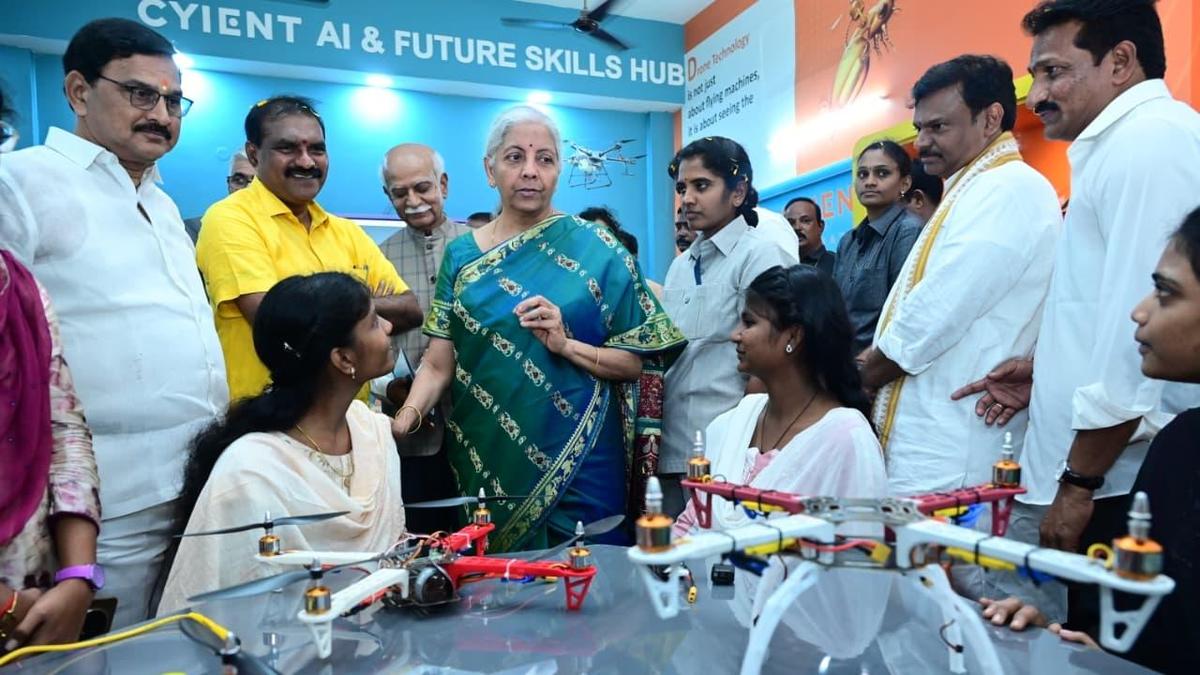 The Union Finance Minister inaugurates ₹18-lakh worth facilities at the Zilla Parishad High School at Pedamainavanilanka village in West Godavari, besides opening an AI skills hub provided by Cyient Limited in the village